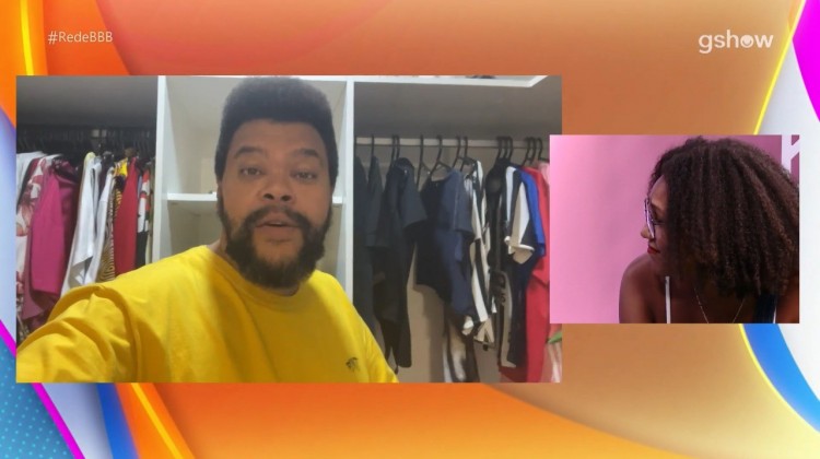 "Tava na torcida para você chegar nessa final: você, DG, Lina... fica de consolo a minha coroa da Xepa e você foi recordista de permanência. Vamos marcar um dia fazer rabada e trocar receitar (risos). O Brasil tá orgulhoso da sua trajetória, sucesso na vida", diz Babu, no clipe gravado.