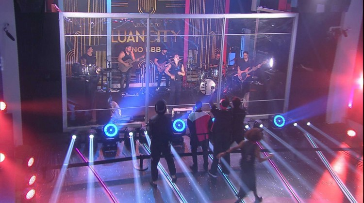 Logo depois, Luan Santana começa o show e empolga os brothers ao cantar "Acordando esse prédio".