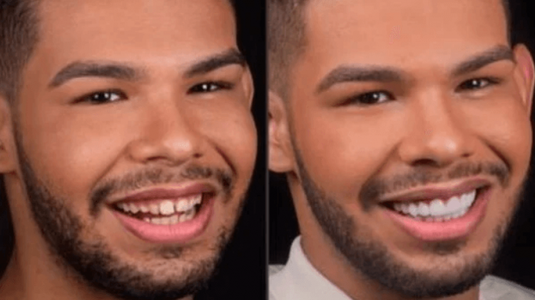 Vyni apresentava diastema, um espaçamento nos dentes da frente, e agora está com toda a sua arcada dentária alinhada devido ao implante de lentes de contato. No total foram vinte lentes aplicadas na boca de Vinícius. Ele também passou por uma gengivoplastia (cirurgia na gengiva para corrigir deformidades). O valor deste tratamento? Nada mais, nada menos do que R$60 mil reais!