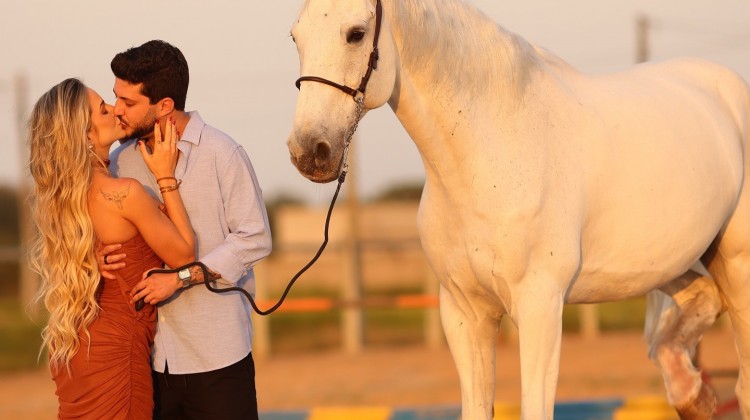 Os dois posaram para fotos ao lado de um cavalo branco, entre beijinhos e carícias. Na legenda da postagem, Gabi se declarou ao namorado: